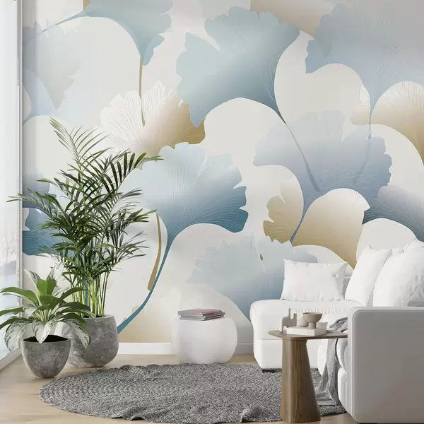 Fotomurales Hojas de congo azules y beige. Nr. w00877