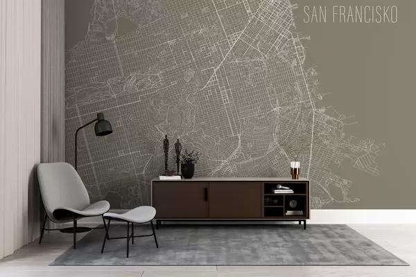 Fotomurales Mapa ampliado Mural mural de la ciudad de San Francisco sobre fondo marrón Nr. w01025v1