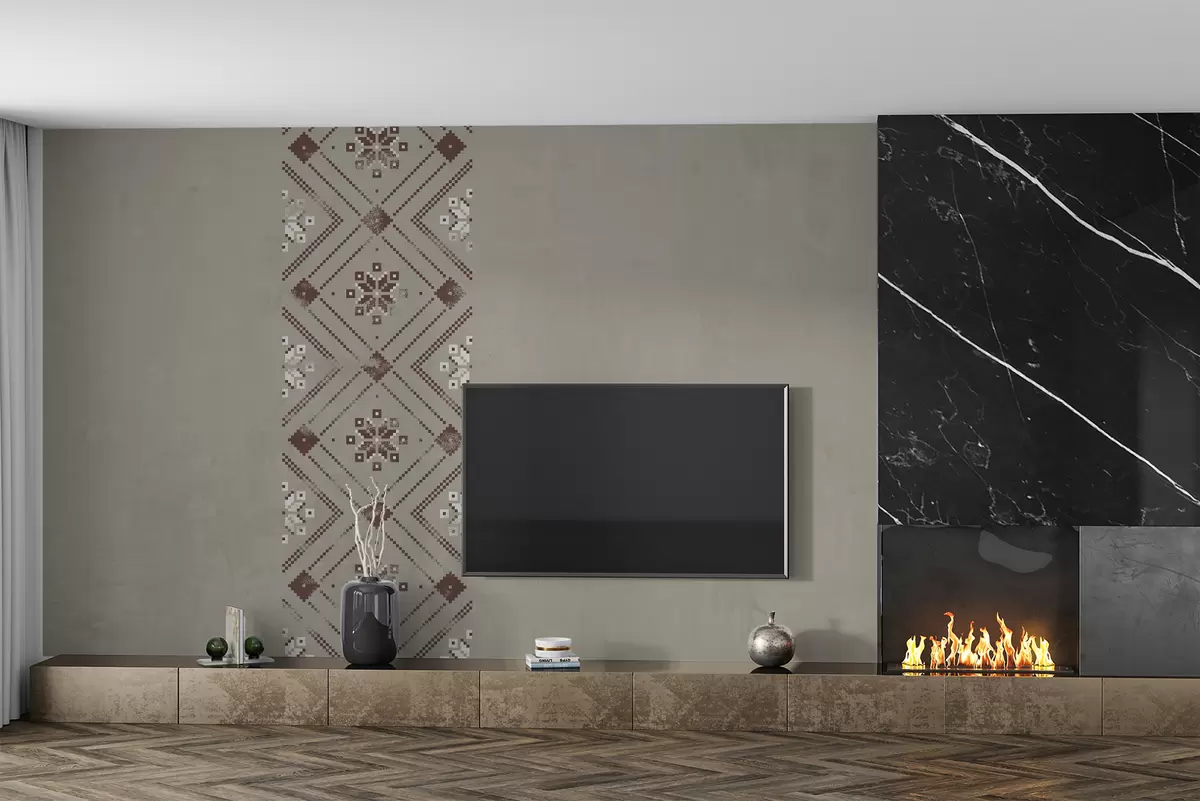 Fotomurales Papel tapiz texturizado patriótico con adornos minimalistas de estilo ucraniano en tonos marrones Nr. w01027v1