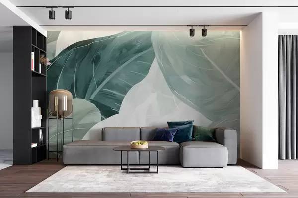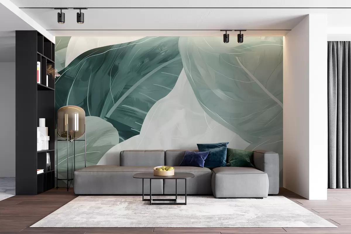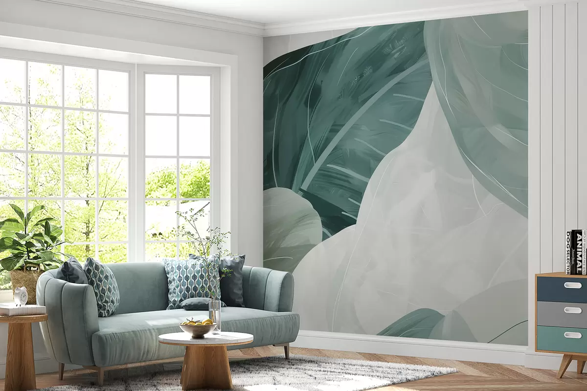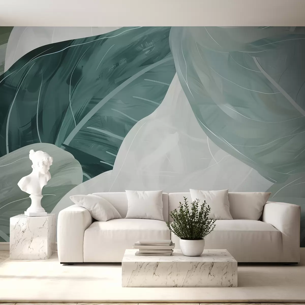 Fotomurales Un primer plano de hojas verdes en un estilo dibujado. Nr. w01276
