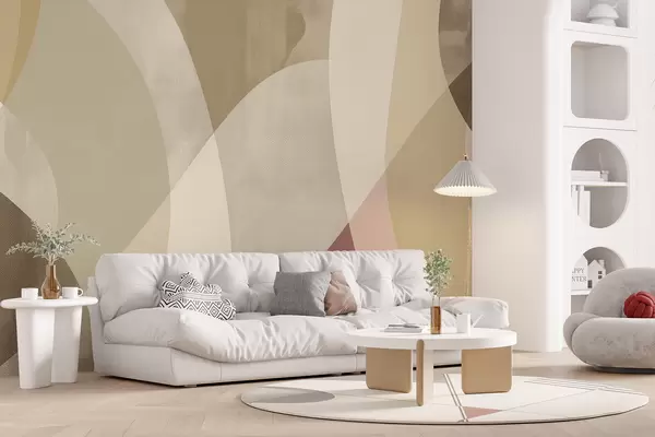 Fotomurales Curvas suaves en tonos apagados con líneas fluidas y degradados beige, minimalista y moderno. Nr. w01334v1