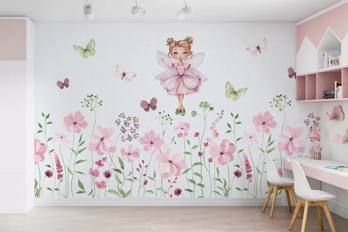 Fotomurales Un hada entre flores y mariposas Nr. w01460