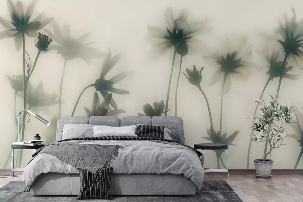 Fotomurales Delicadas flores en la niebla en colores azules. Nr. w01468v1