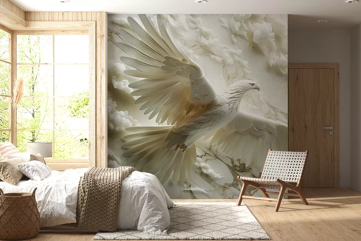 Fotomurales Águila blanca 3D sobre un fondo de nubes y mármol. Nr. w01477