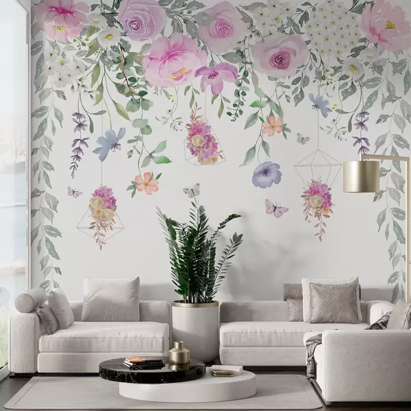 Fotomurales Flores colgantes, adornos florales y mariposas. Nr. w01517