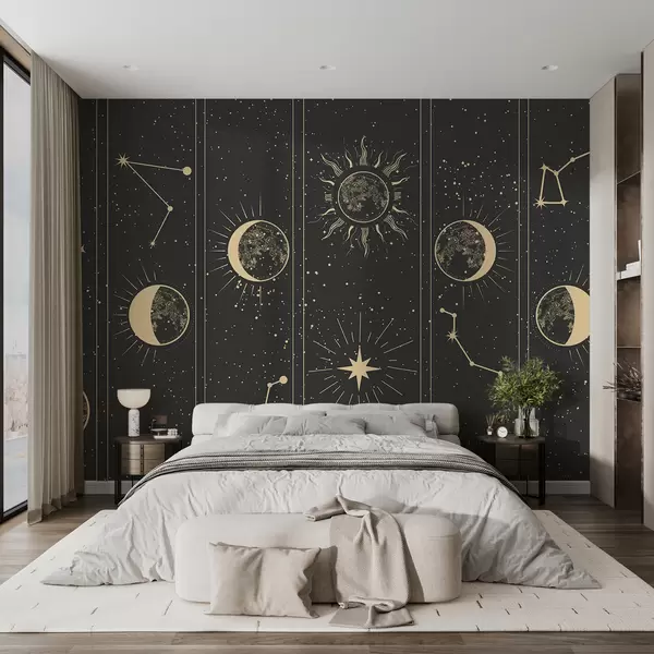 Fotomurales Fase lunar, sol, fondo marrón oscuro Nr. w01537v1