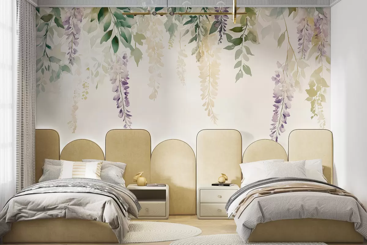 Fotomurales Adorno de flor de glicina, floral, acuarela, colores naturales Nr. w01545