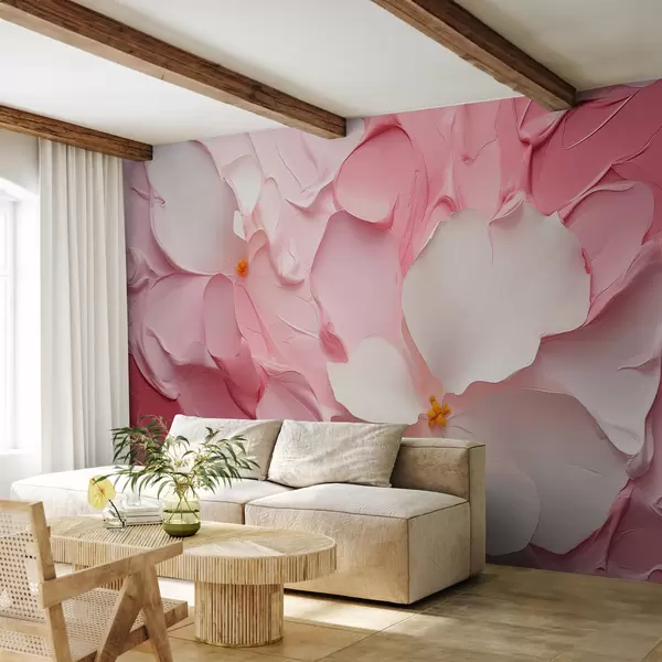 Fotomurales Flores blancas abstractas trazos de pintura de color rosa Nr. w01555