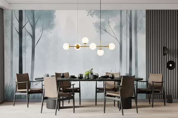 Fotomurales Acuarela bosque, niebla, árboles, hierba, paisaje natural, color gris Nr. w01563v3