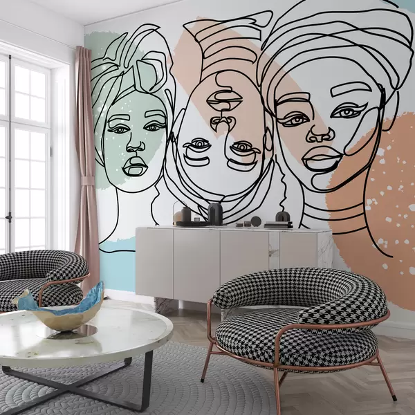 Fotomurales Tres mujeres,mujer con lineas,colores suaves,abstracto Nr. w01570
