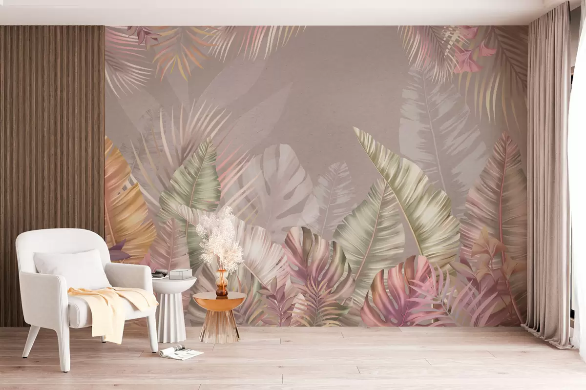 Fotomurales Hojas tropicales en suaves tonos pastel Nr. w01684