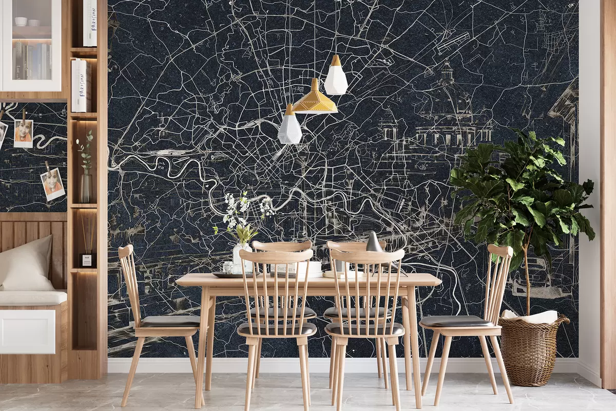 Fotomurales Mapa de la ciudad de Roma, dibujo lineal, arquitectura, Italia, colores oscuros Nr. w01698v1