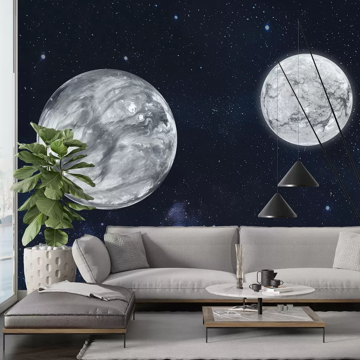Fotomurales Espacio cósmico con plantas y cielo estrellado Nr. w01801