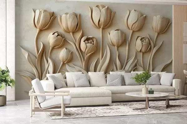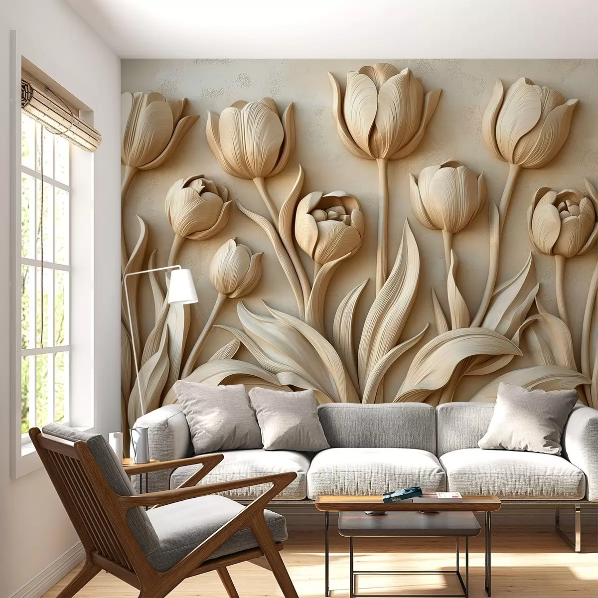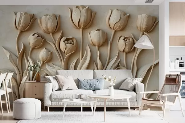 Fotomurales Arte floral con hermosos tulipanes en una paleta de colores beige Nr. w01852