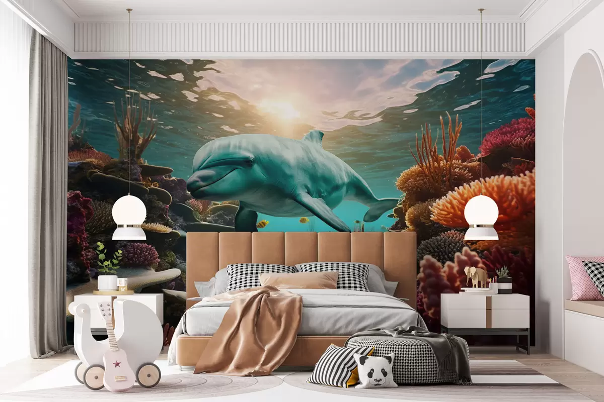 Fotomurales Gran delfín en el mundo submarino de los arrecifes de coral Nr. w01873