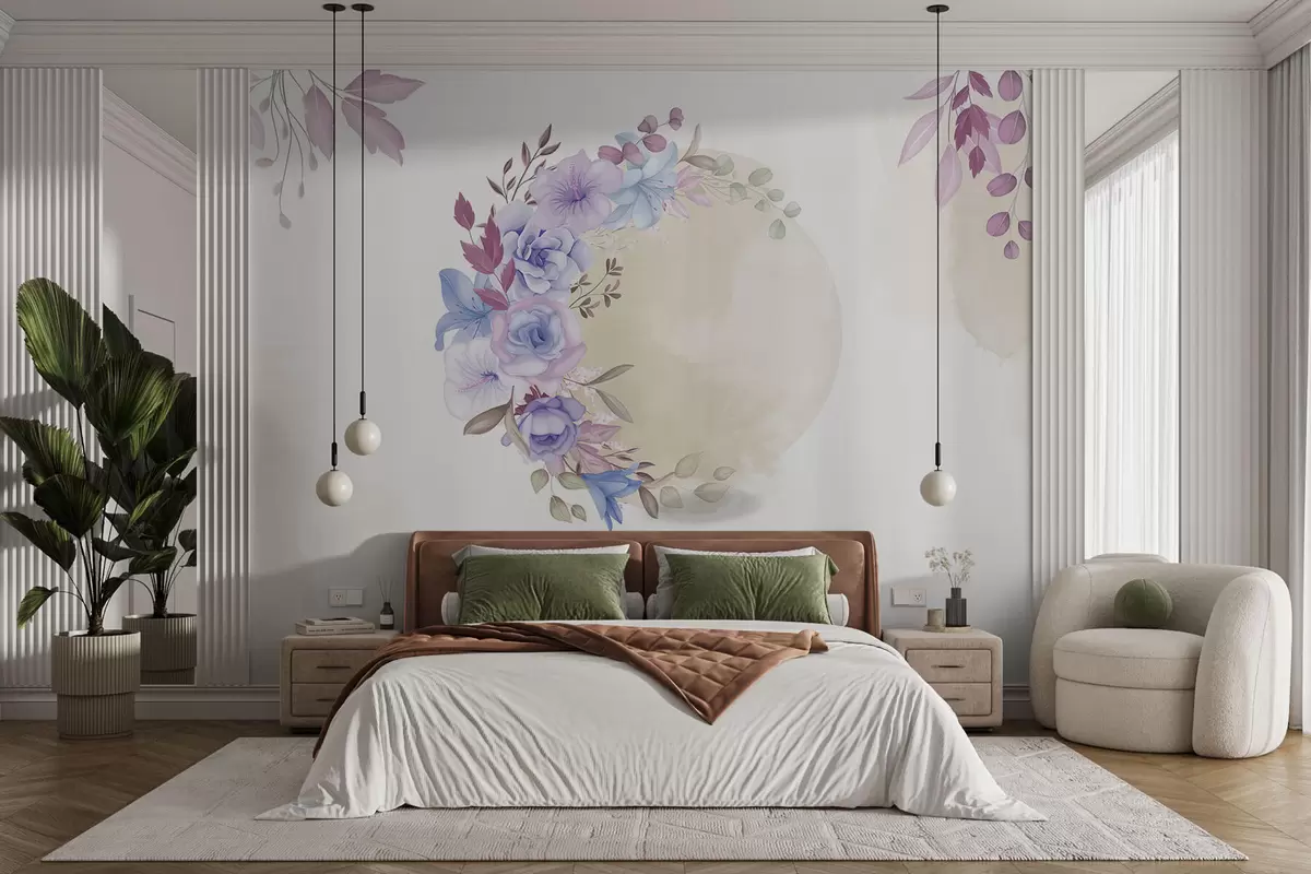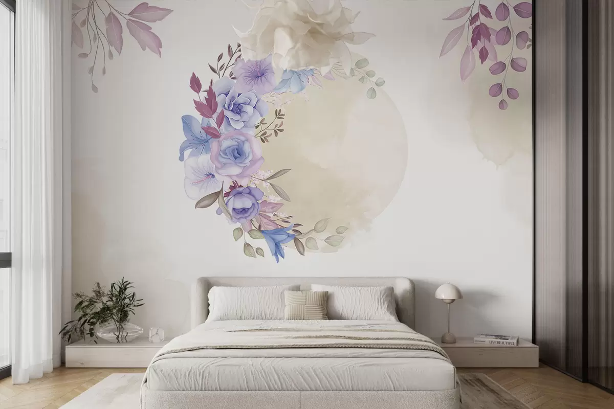Fotomurales Delicadas flores en forma de media luna en estilo acuarela con manchas beige Nr. w01874