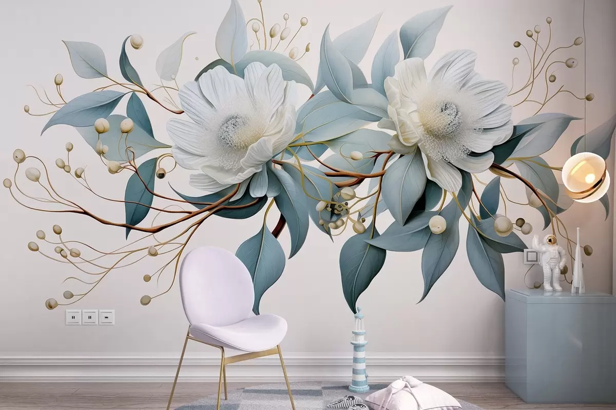 Fotomurales Hermosas flores de acrílico con hojas y bayas, realismo Nr. w01887