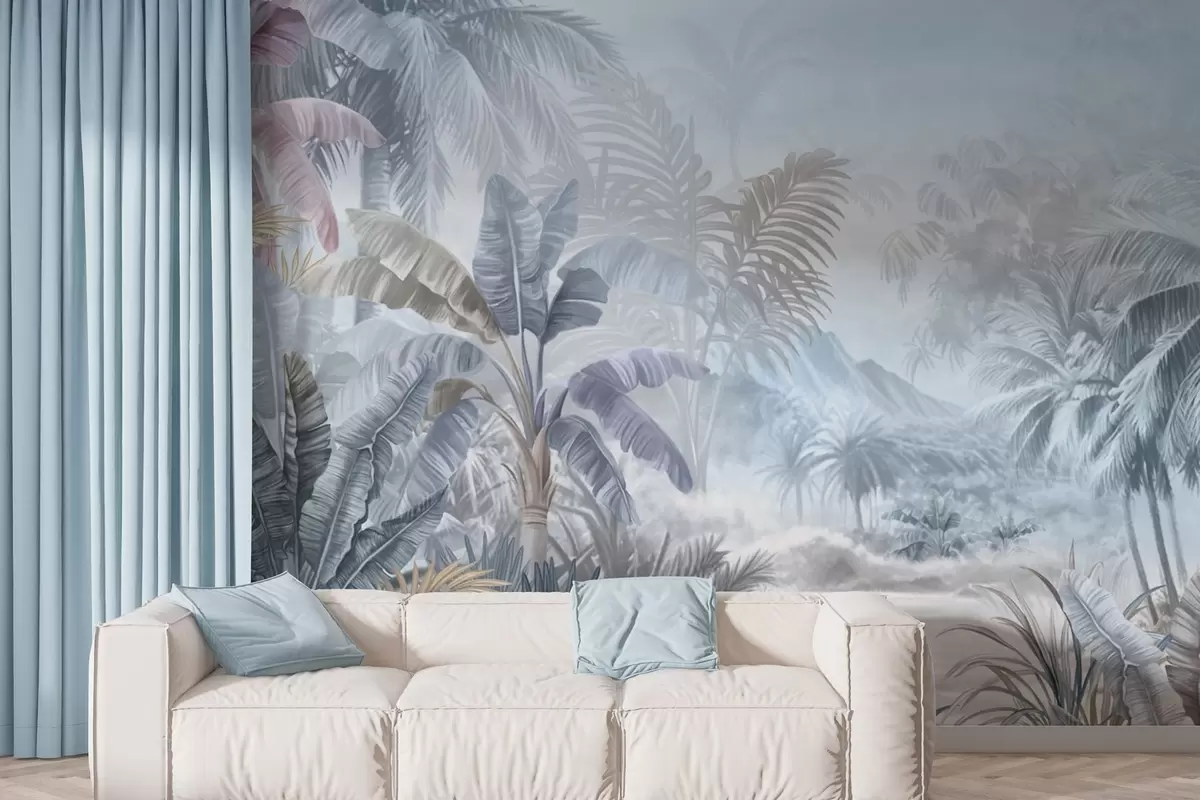 Fotomurales Selva tropical en suaves tonos azules Nr. w01931