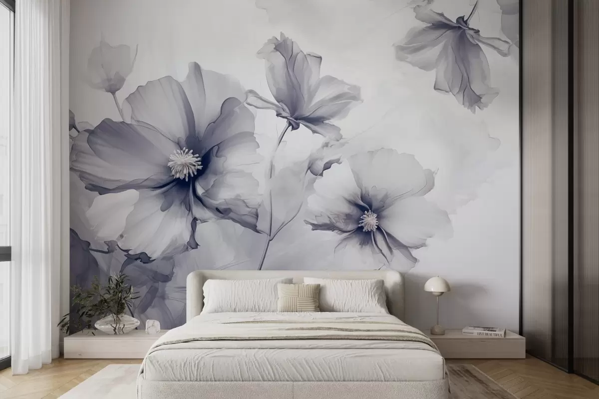 Fotomurales Aireadas flores azules translúcidas que se disuelven en la luz de la mañana Nr. w01938v2