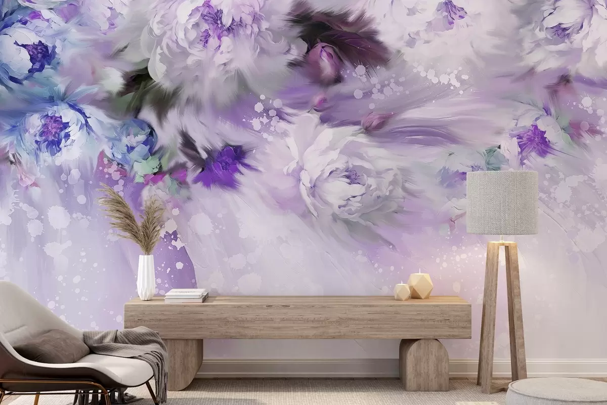 Fotomurales Acrílico peonías, pinceladas, floral, colores pastel púrpura suave Nr. w02021v3