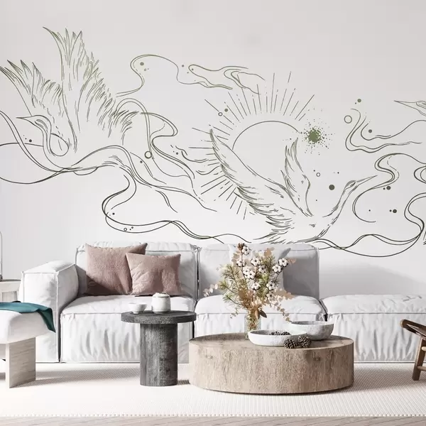 Fotomurales Pájaros voladores, dibujo lineal, minimalismo, paleta de colores grises Nr. w02022v1