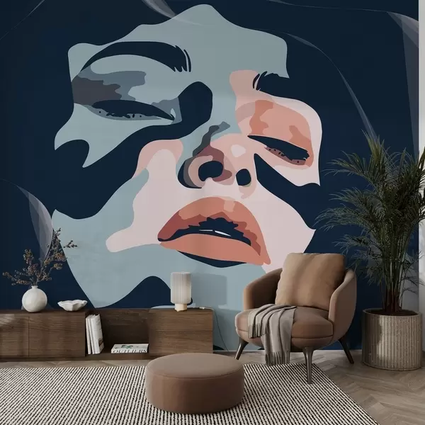 Fotomurales Cara de niña sobre fondo azul, pintada con colores Nr. w02060
