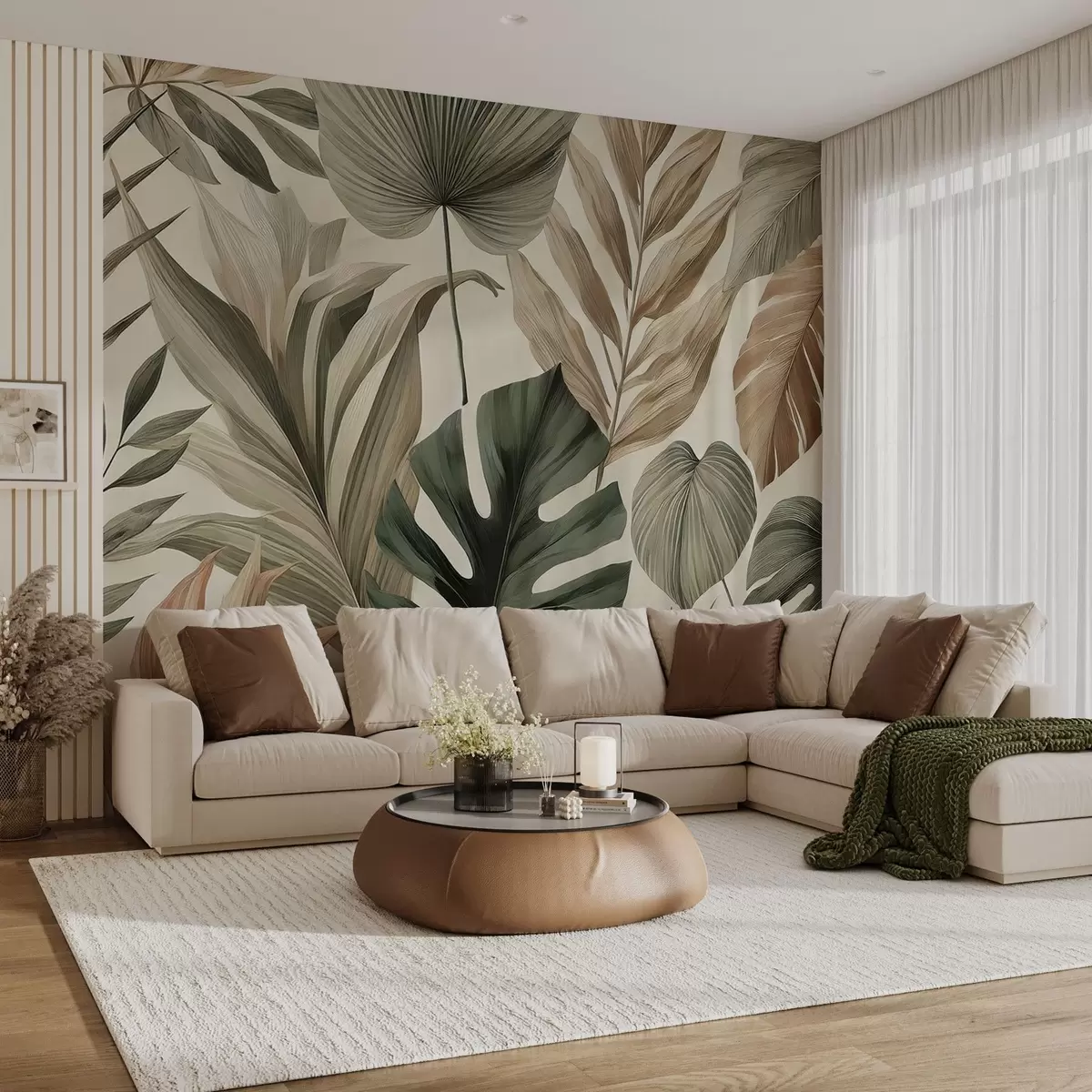 Fotomurales Grandes hojas tropicales en delicados y sobrios tonos pastel Nr. w02082