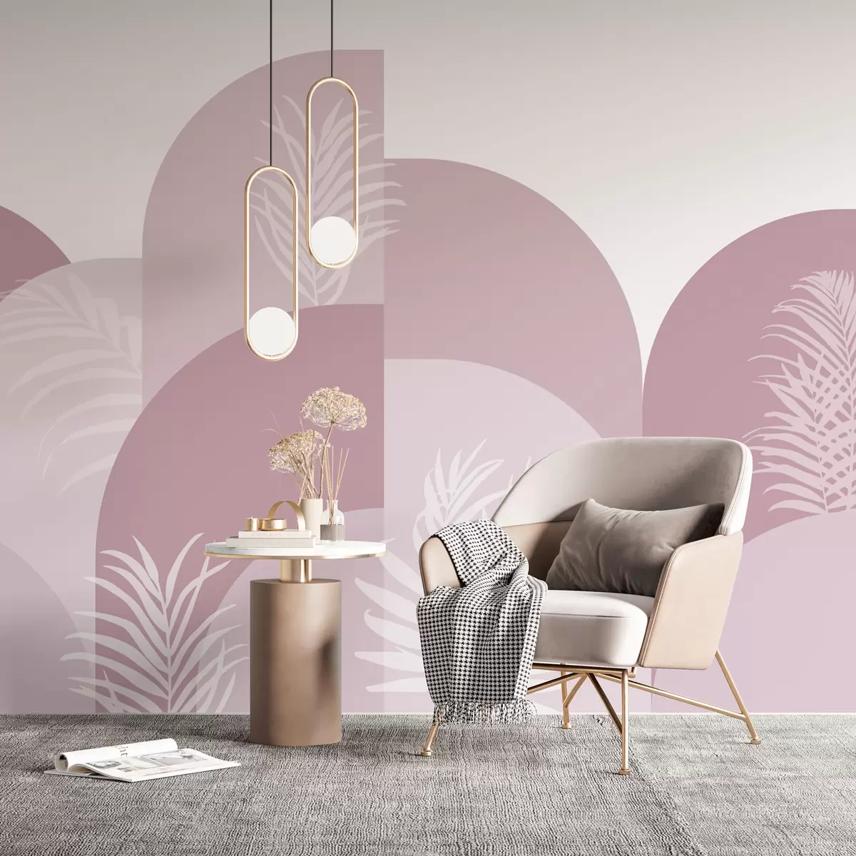 Fotomurales Arcos de moda con hojas tropicales color rosa Nr. w02101v4