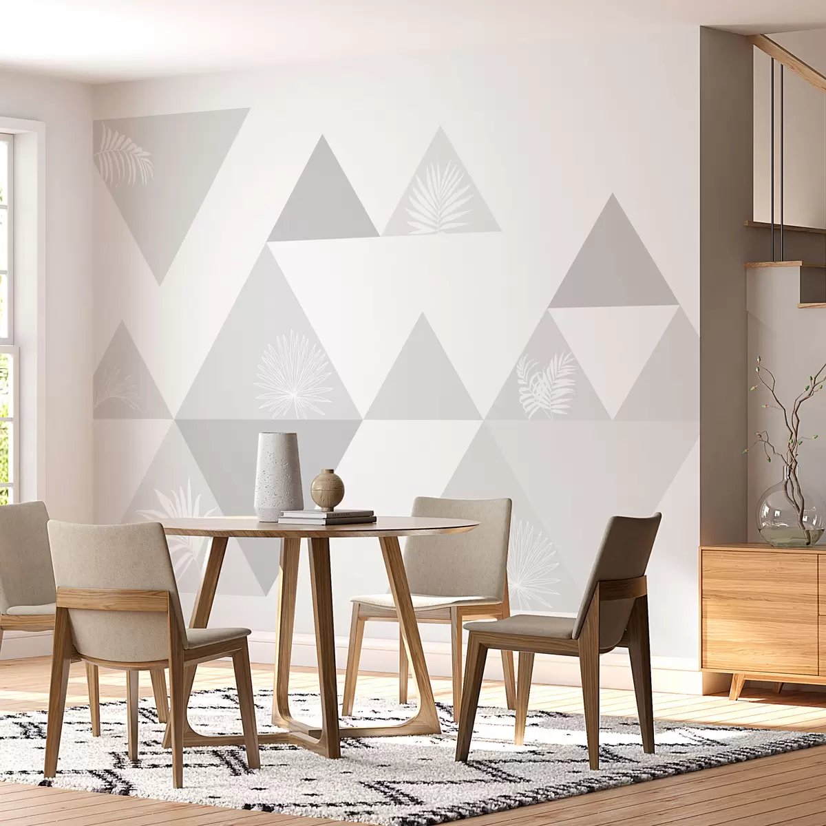 Fotomurales Elegantes triángulos con hojas de color gris Nr. w02106v2