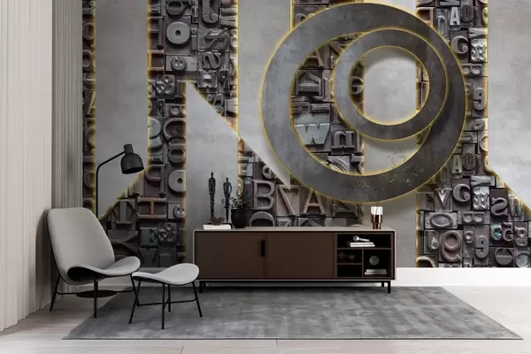 Fotomurales Papel pintado moderno estilo loft con imitación de letras tridimensionales, hormigón y retroiluminación Nr. w02125