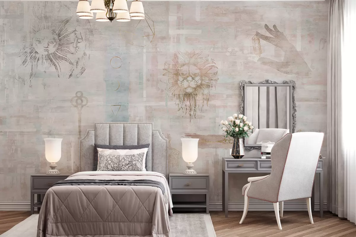 Se puede limpiar suavemente con una esponja suave. Los murales de pared con recubrimiento de barniz pueden limpiarse con agua.