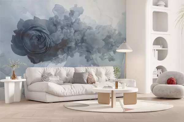 Fotomurales Rosa en el humo. El papel pintado se inspira en los patrones aéreos de la fatalidad y la rosa. En colores fríos. Nr. w02138