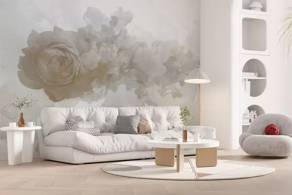 Fotomurales Rosa en el humo. El papel pintado se inspira en los patrones aéreos de la fatalidad y la rosa. En tonos beige. Nr. w02138v1