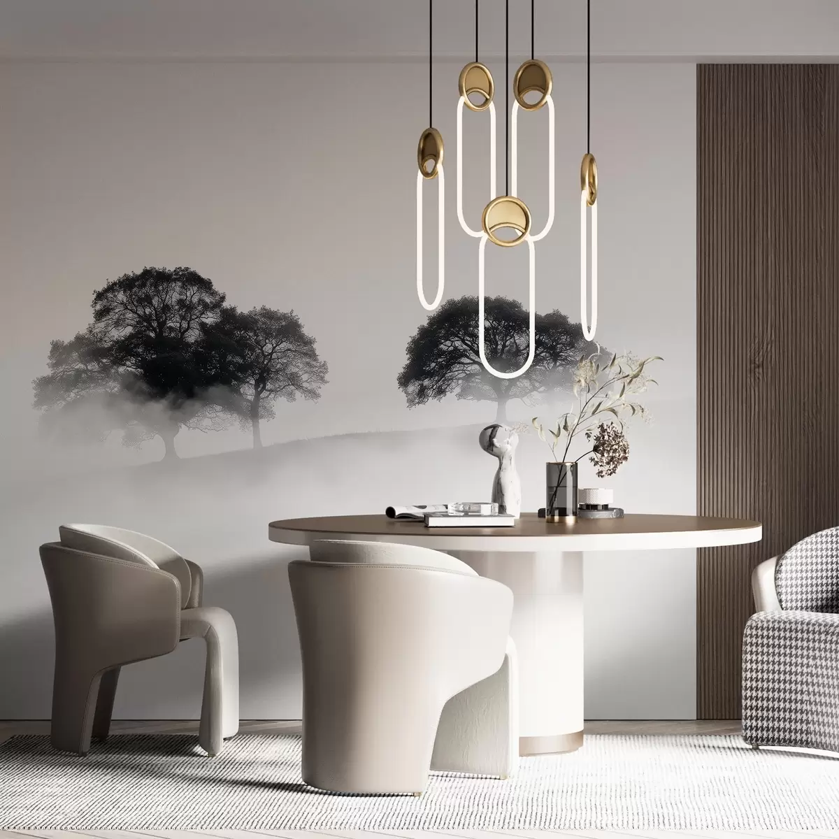 Fotomurales Árboles en la colina, minimalismo, naturaleza, blanco y negro Nr. w02148