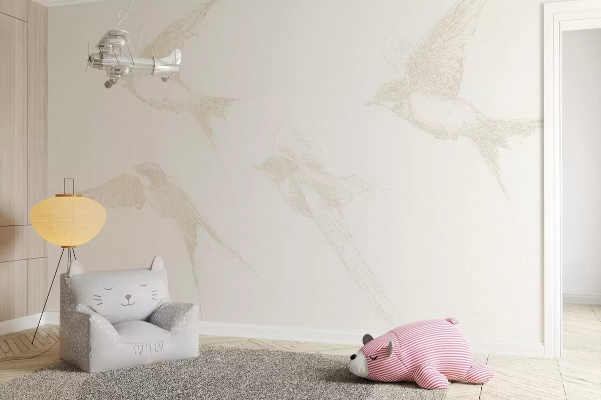 Fotomurales Pájaros voladores, dibujo a lápiz, minimalismo, colores beige suaves Nr. w02154