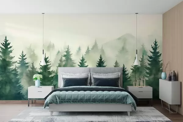 Fotomurales Bosque brumoso en suaves tonos verdes Nr. w02161