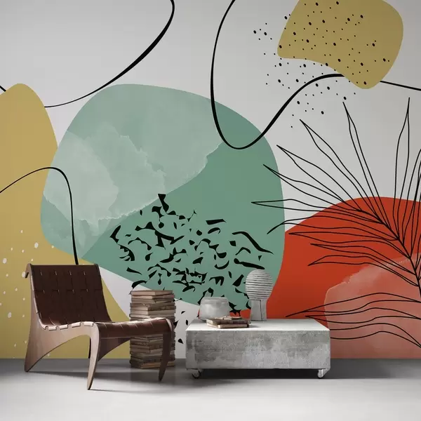 Fotomurales Abstracción geométrica de manchas y líneas azul, rojo, amarillo Nr. w02168v1