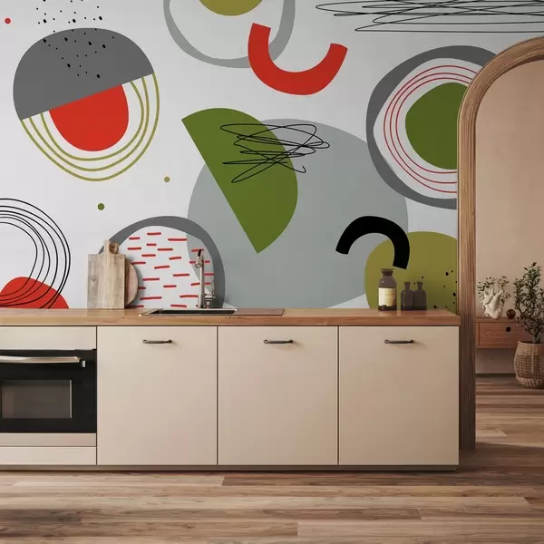 Fotomurales Abstracción de formas geométricas y líneas, color verde, gris, rojo Nr. w02170