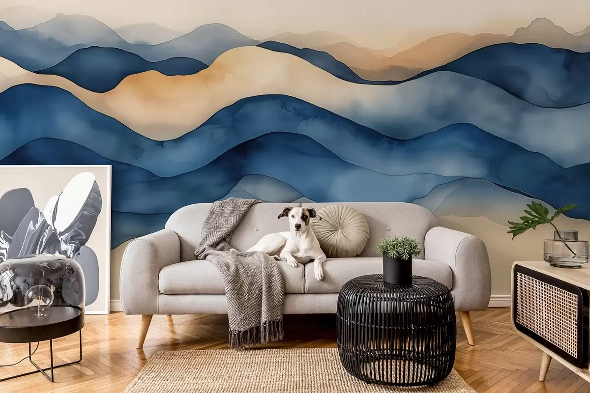 Fotomurales Ondas abstractas azul-beige que recuerdan a montañas Nr. w02196