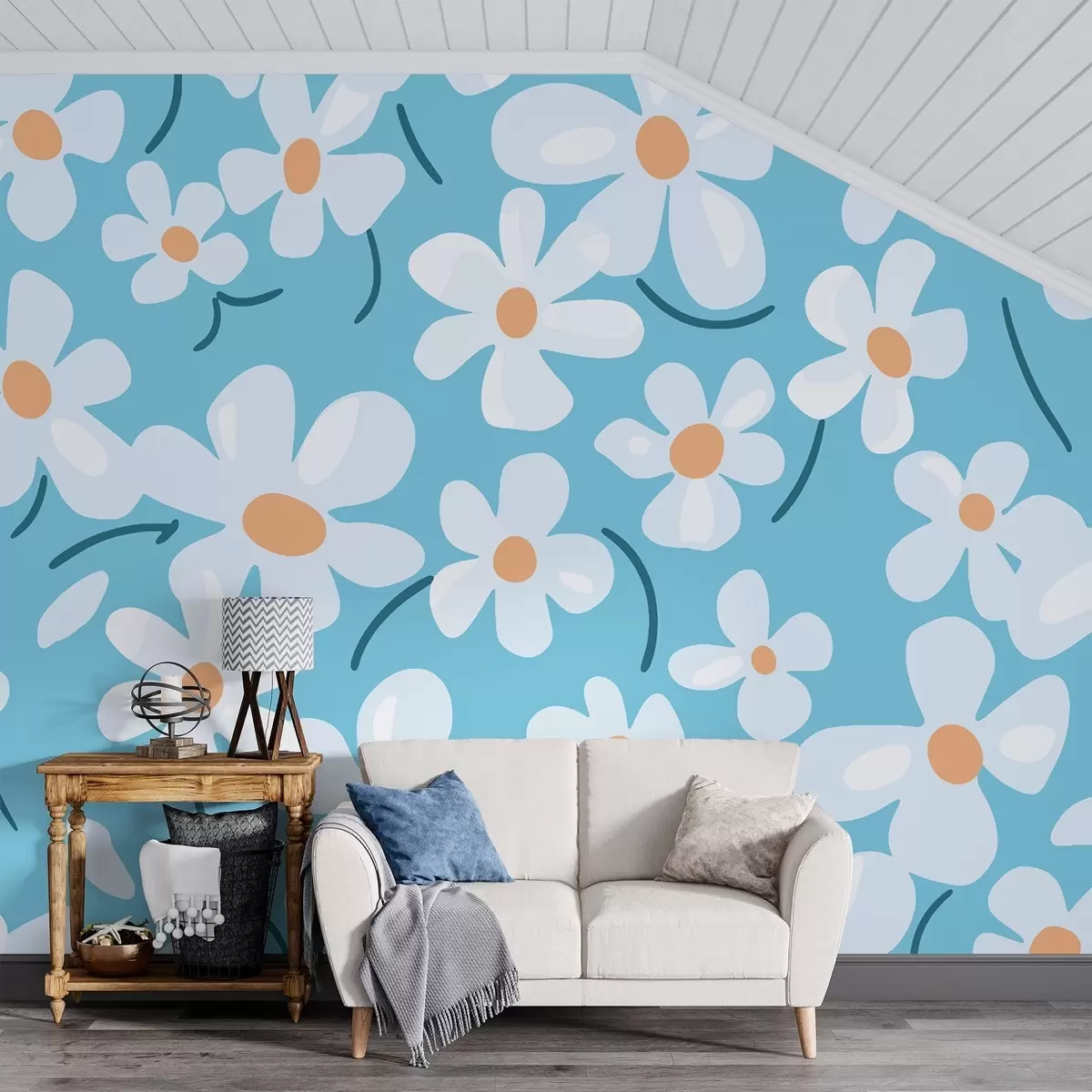 Fotomurales Margaritas sobre fondo azul Nr. w02216