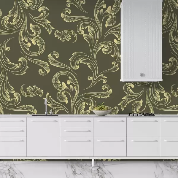 Fotomurales Damasco, ornamento monograma, tinte verde Nr. w02247