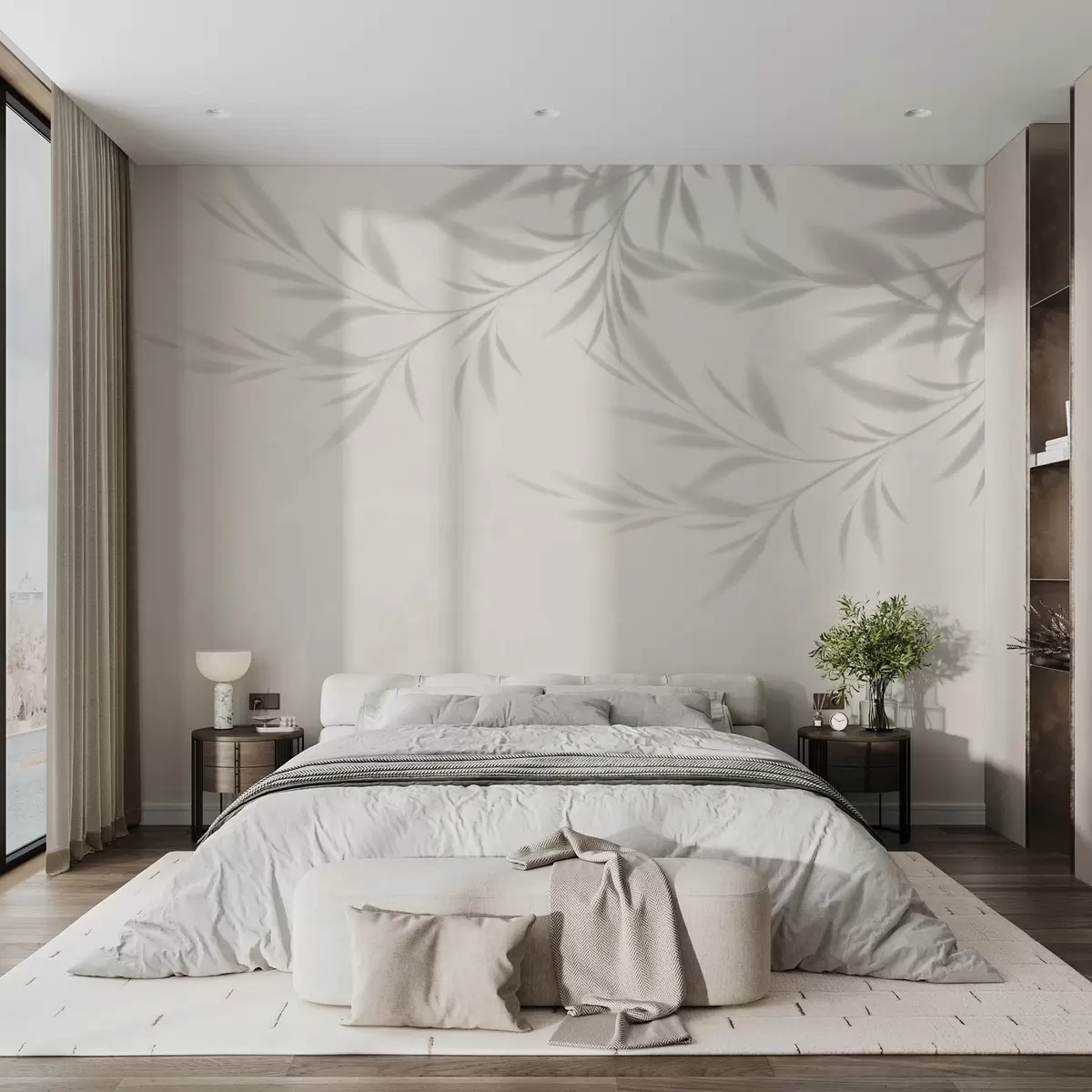 Fotomurales Sombra de ramas y hojas sobre fondo beige Nr. w02283v1