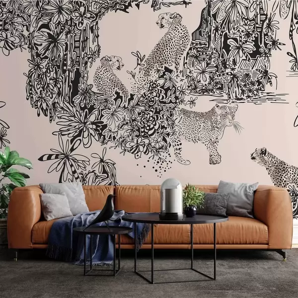 Fotomurales Leopardo y árboles en tonos beige Nr. w02364