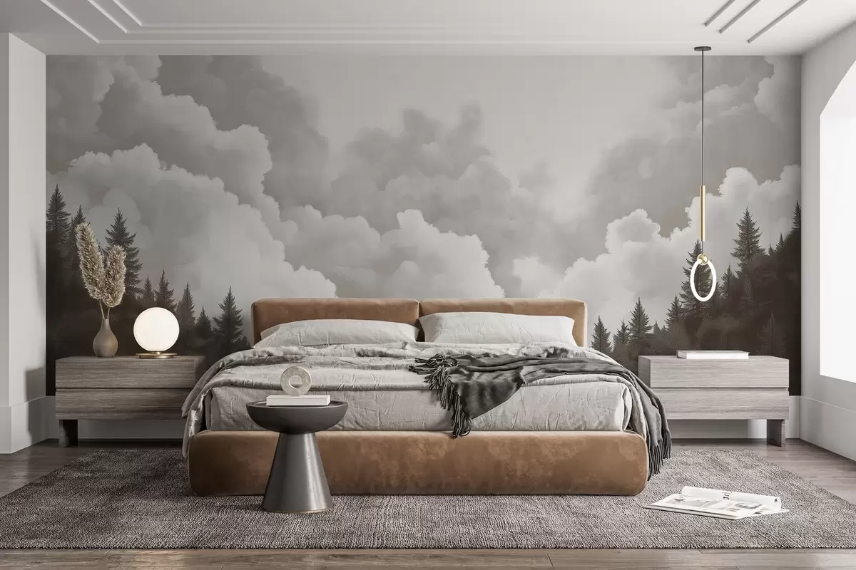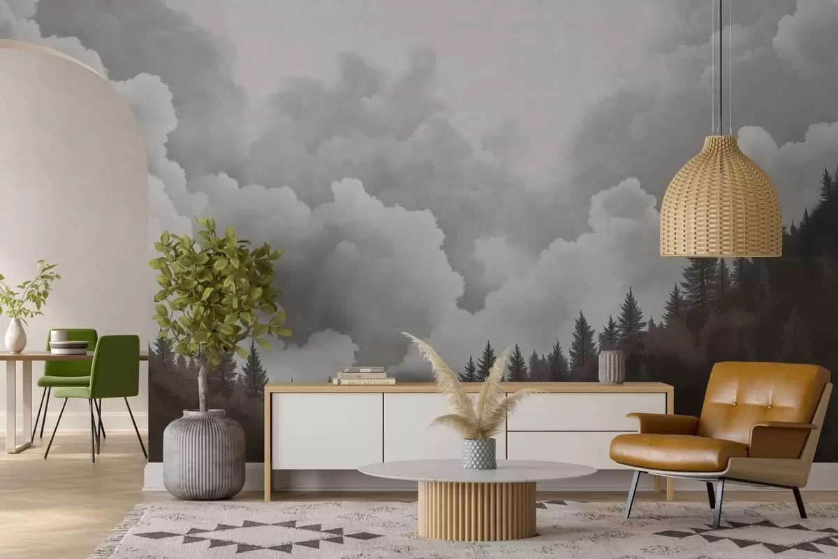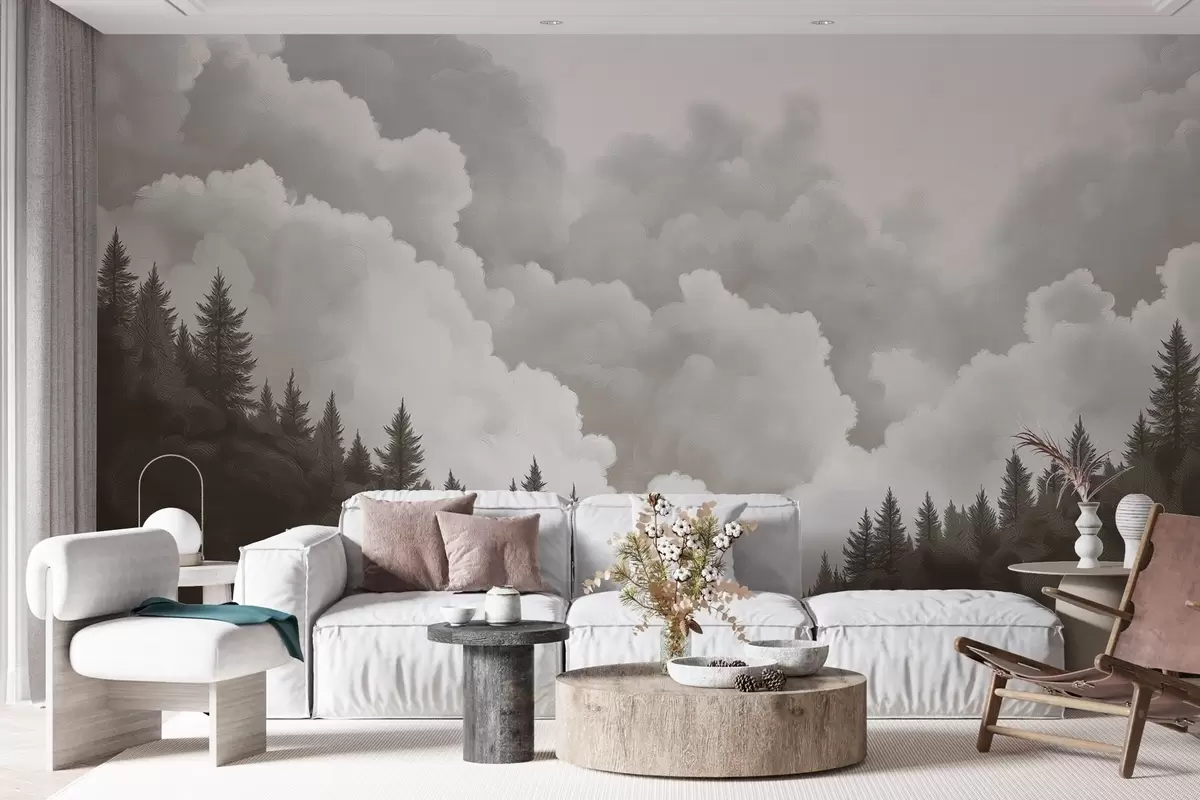 Fotomurales Nubes espesas pintadas al óleo sobre el bosque Nr. w02411v1