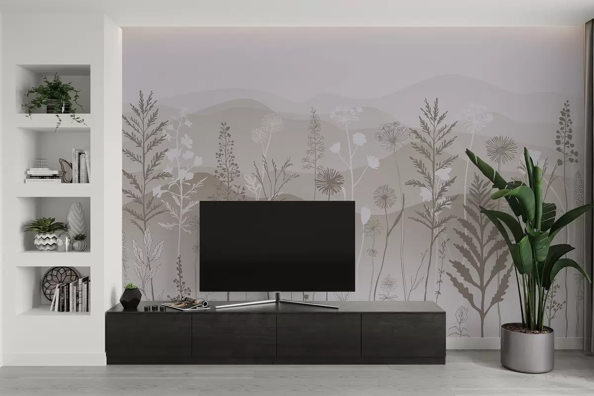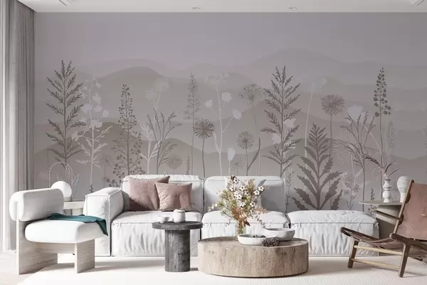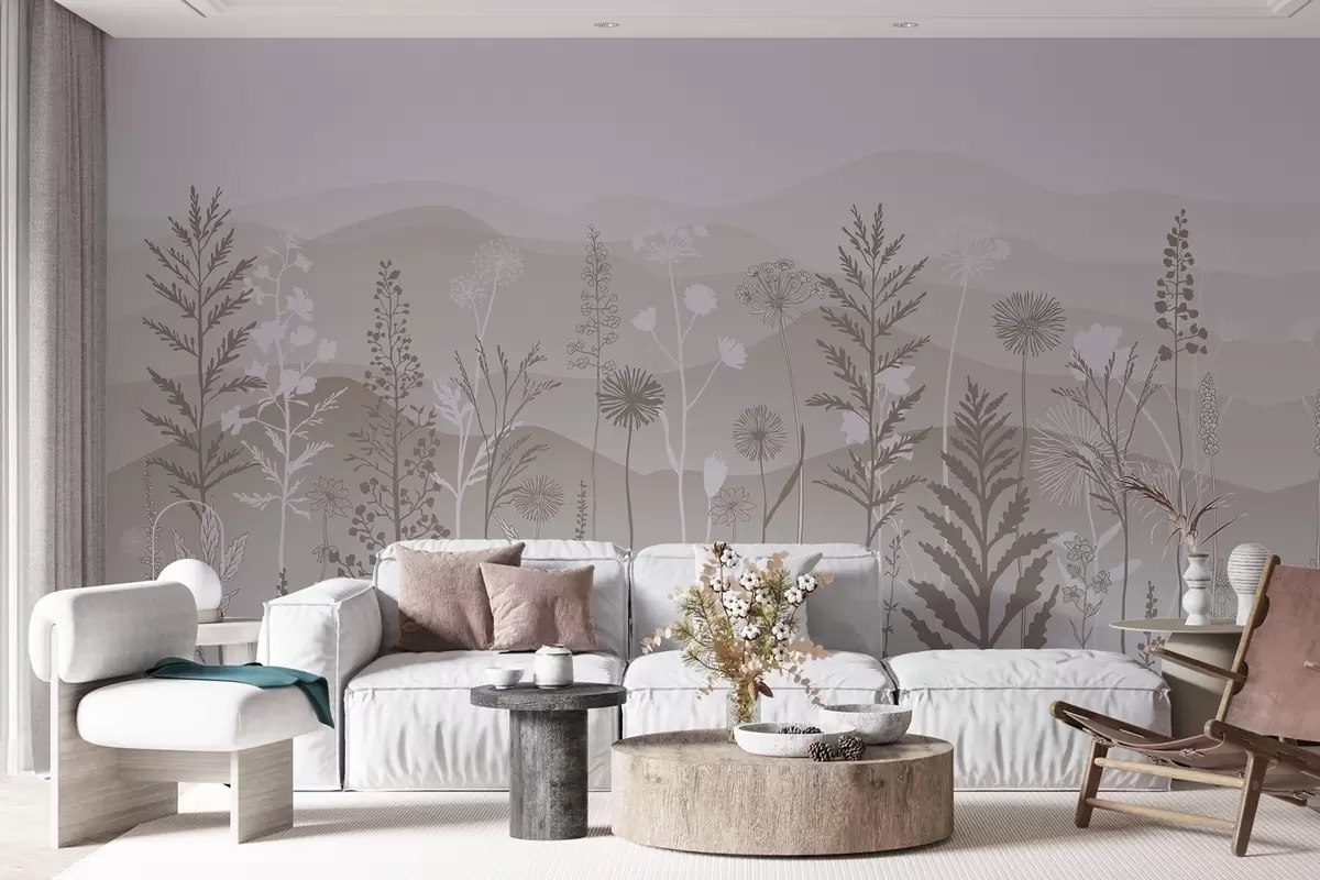 Fotomurales papel pintado ecológico, flores silvestres en tonos marrones claros Nr. w02443v1