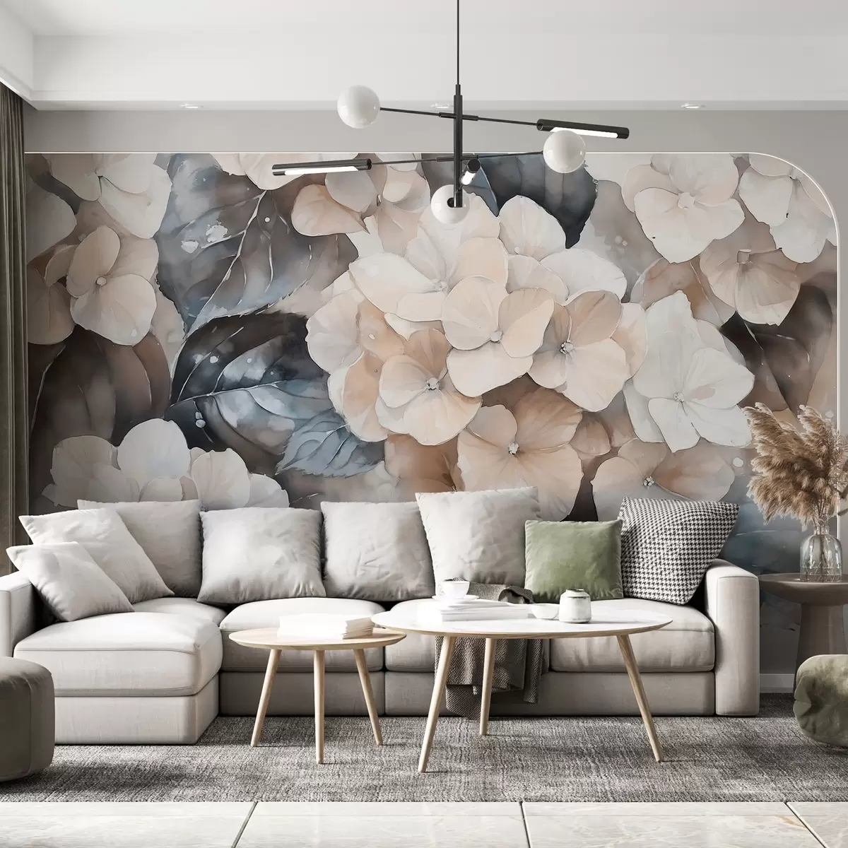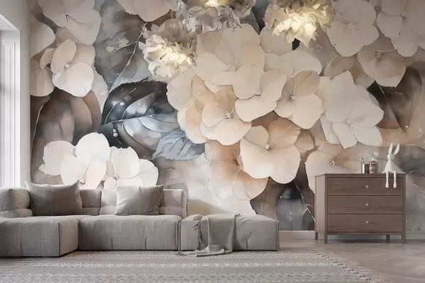 Fotomurales Flores de hortensia, dibujo estilo acuarela, colores beige, floral Nr. w02488