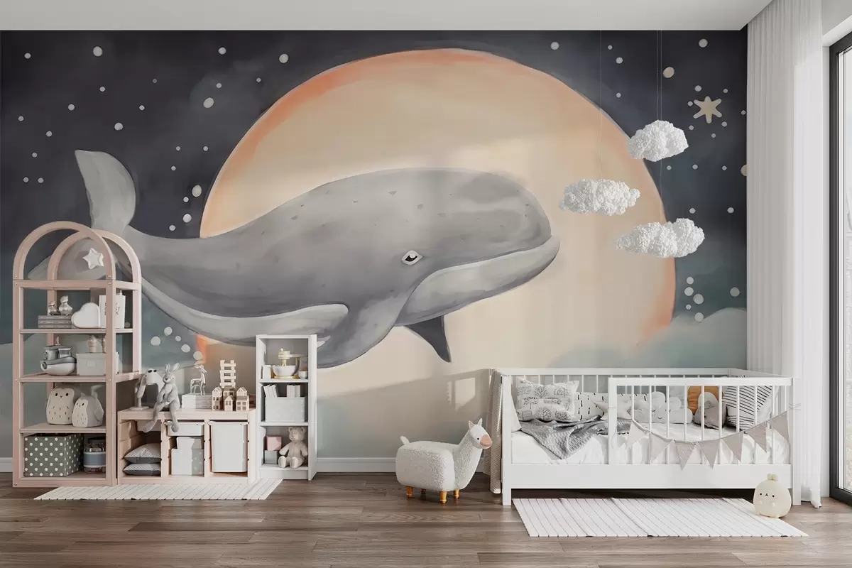 Fotomurales Ballena sobre el fondo de la luna Nr. w02527