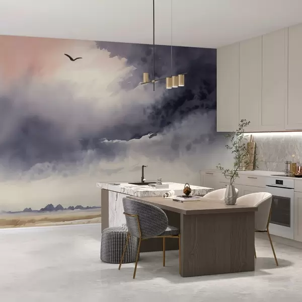 Fotomurales Cielo tormentoso sobre el campo imitación acuarela Nr. w02581