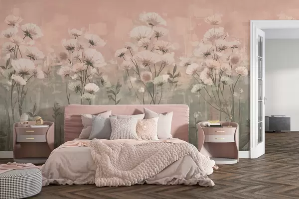Fotomurales Delicadas flores silvestres con efecto de pinceladas en rosa Nr. w02629