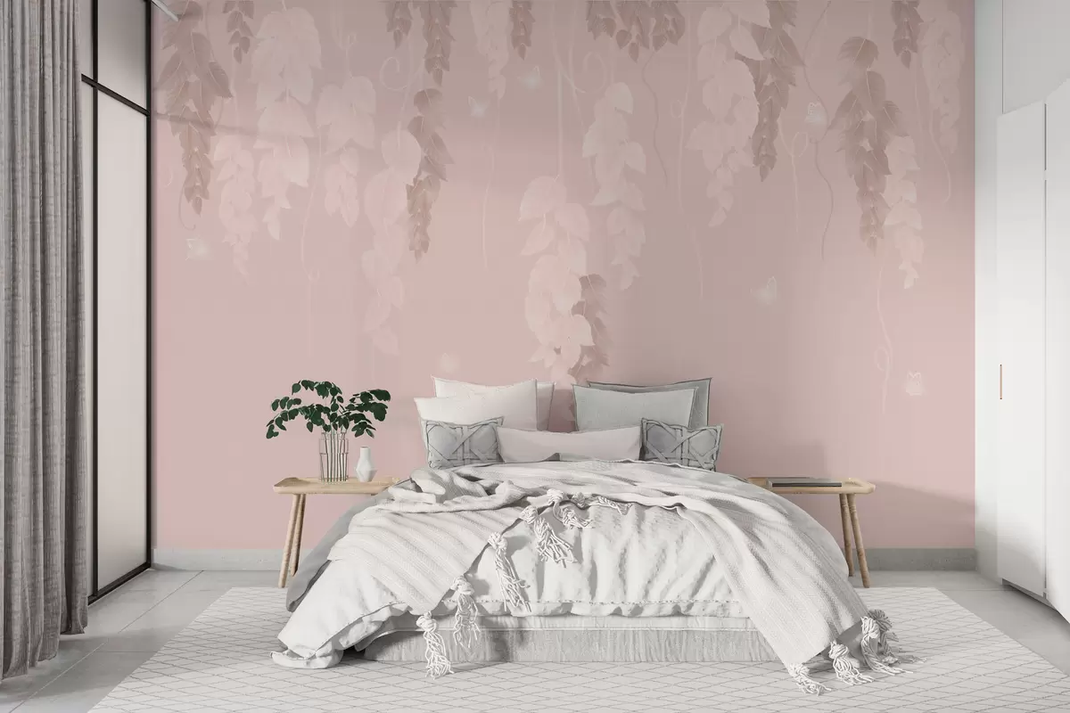 Fotomurales Hojas colgantes y mariposas en rosa Nr. w02655